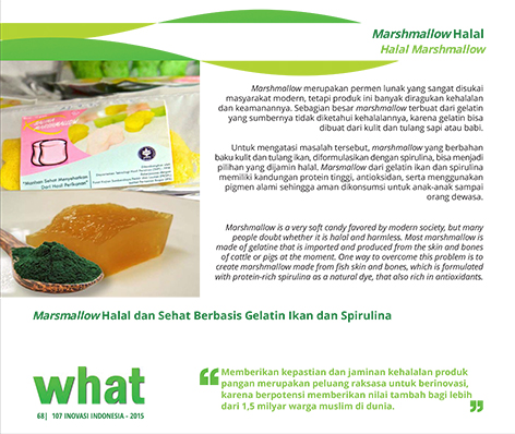 Awet Karena Formalin? No Way. Pakai Kitosan!Last Longer with Formalin? No Way. Use Chitosan!Kitosan dari Limbah Invertebrata Laut Sebagai Bahan Pengawet Alami Pada Pengolahan Ikan Asin Status Paten: Telah Terdaftar Kesiapan Inovasi: *** Telah Dikomersialkan Kerjasama Bisnis: *** Terbuka Peringkat Inovasi: *** Terbuka | |