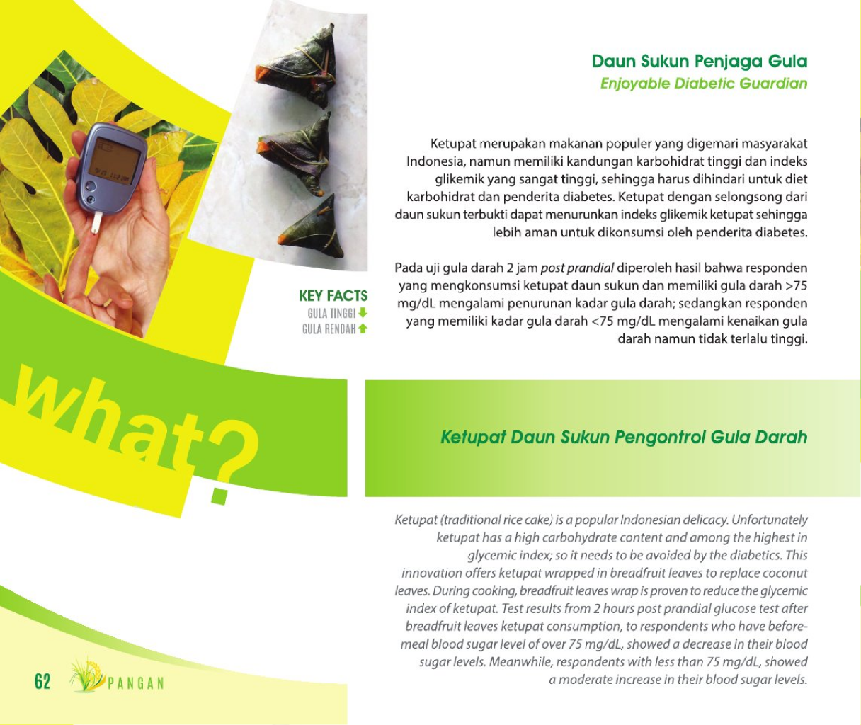 Daun Sukun Penjaga GulaEnjoyable Diabetic GuardianKetupat Daun Sukun Pengontrol Gula Darah Status Paten: Dalam Proses Pengajuan Kesiapan Inovasi: Kerjasama Bisnis: *** Terbuka Peringkat Inovasi: *** Terbuka | |