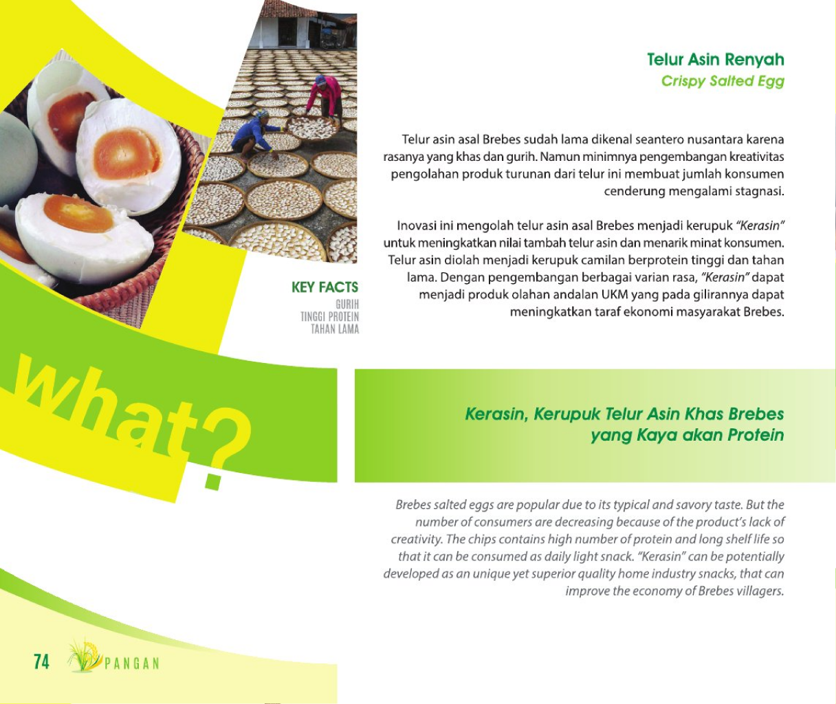 Telur Asin RenyahCrispy Salted EggKerasin, Kerupuk Telur Asin Khas Brebes yang Kaya akan Protein Status Paten: Dalam Proses Pengajuan Kesiapan Inovasi: Kerjasama Bisnis: * Terbatas Peringkat Inovasi: * Terbatas | |