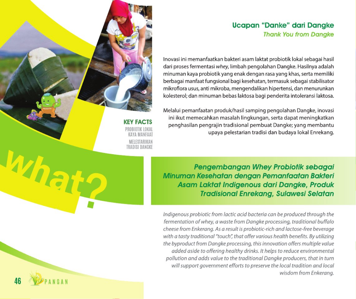 UcapanThank You from DangkePengembangan Whey Probiotik sebagai Minuman Kesehatan dengan Pemanfaatan Bakteri Asam Laktat Indigenous dari Dangke, Produk Tradisional Enrekang, Sulawesi Selatan Status Paten: Dalam Proses Pengajuan Kesiapan Inovasi: Kerjasama Bisnis: ** Luas Peringkat Inovasi: ** Luas | |