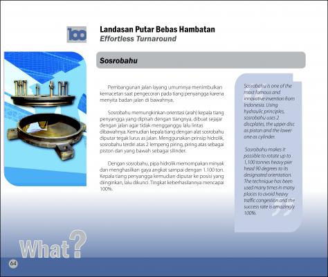 Landasan Putar Bebas HambatanEffortless TurnaroundSosrobahu Status Paten: Telah Terdaftar Kesiapan Inovasi: *** Telah Dikomersialkan Kerjasama Bisnis: * Terbatas Peringkat Inovasi: * Terbatas | |