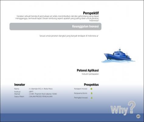 Kapal Katamaran Bergelombang KecilLow Wash Katamaran ShipKapal Katamaran Teknologi Low Wash Status Paten: Dalam Proses Pengajuan Kesiapan Inovasi: * Prototype Kerjasama Bisnis: * Terbatas Peringkat Inovasi: * Terbatas | |
