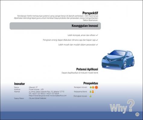 Mobil Hybrid Buatan IndonesiaHybrid Car Made in IndonesiaMobil Hybrid LIPI Status Paten: Telah Terdaftar Kesiapan Inovasi: * Prototype Kerjasama Bisnis: ** Luas Peringkat Inovasi: ** Luas | |
