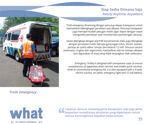 Siap Sedia Dimana SajaReady Anytime AnywhereTrolli Emergency Status Paten: Telah Terdaftar Kesiapan Inovasi: Kerjasama Bisnis: * Terbatas Peringkat Inovasi: * Terbatas | |