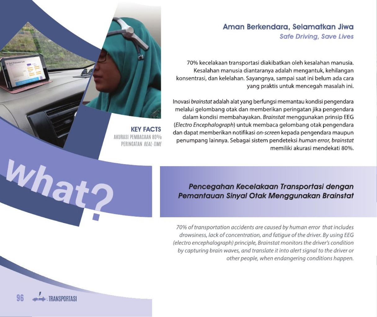 Aman Berkendara, Selamatkan JiwaSafe Driving, Save LivesPencegahan Kecelakaan Transportasi dengan Pemantauan Sinyal Otak Menggunakan Brainstat Status Paten: Dalam Proses Pengajuan Kesiapan Inovasi: Kerjasama Bisnis: *** Terbuka Peringkat Inovasi: *** Terbuka | |